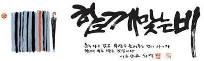 *고 신영복 교수가 쓴 ‘함께 맞는 비' 붓글씨