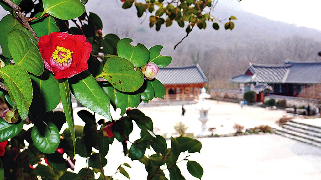 초봄이면 붉은 꽃을 피워 사찰을 ‘장엄(莊嚴)’(불교용어로 ‘꾸미고 장식한다’는 뜻)하는 역할도 한다.
