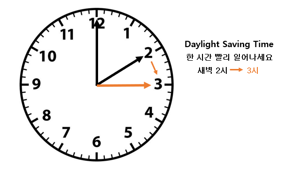 이에 따라 이날 새벽 2시를 3시로 한 시간 앞당겨야 한다. 전날 취침 전에 시계를 조정해놓는 것이 좋다.