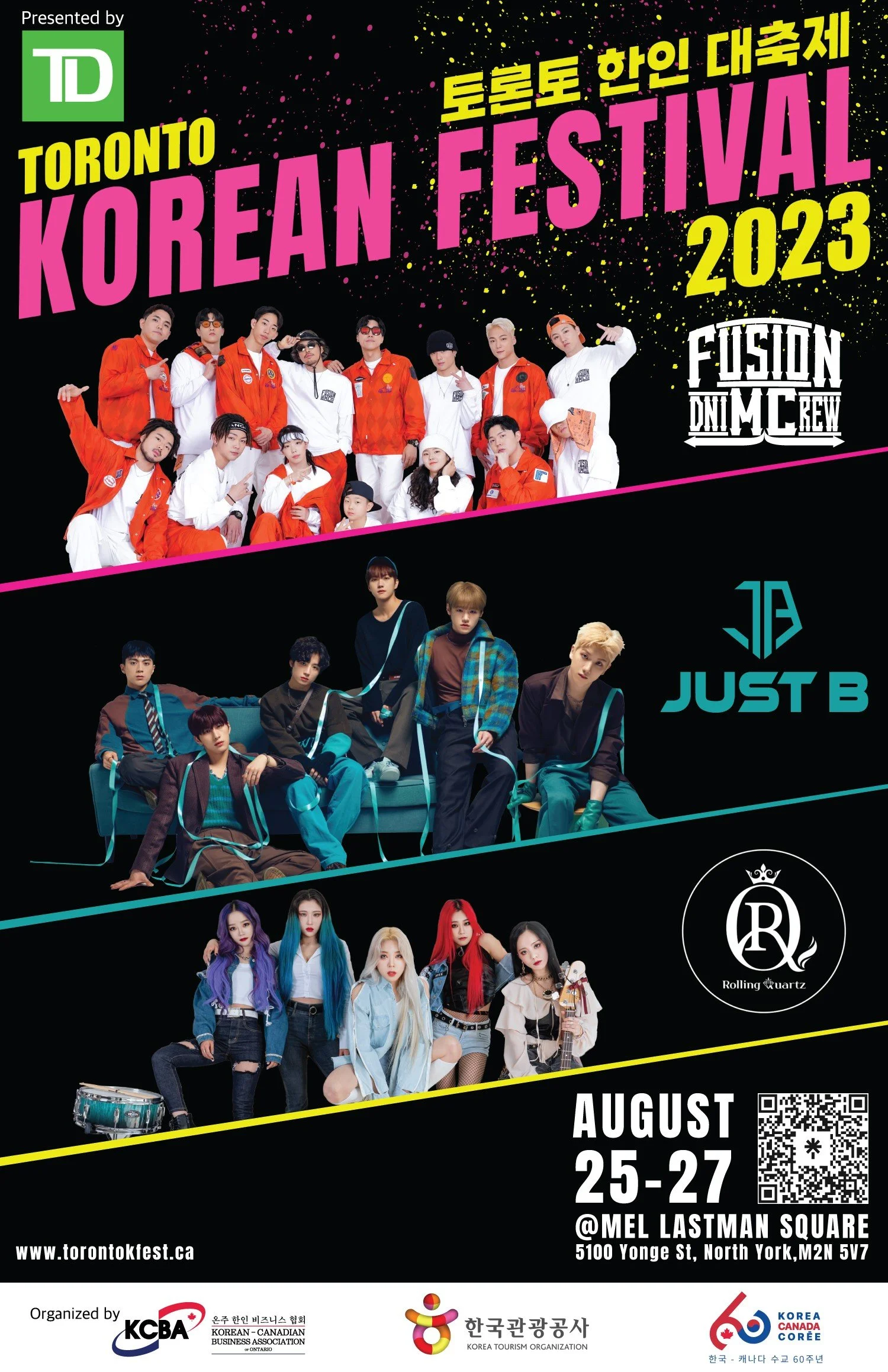 온타리오 한인비즈니스협회(KCBA,회장 채현주)는 TD은행과 한국관광공사(KTO), 토론토 대한민국 총영사관의 후원으로 제23회 토론토 한인대축제(Toronto Korean Festival)를 오는 8월 25일~8월 27일 노스욕 멜라스트먼광장에서 3일간 개최한다.