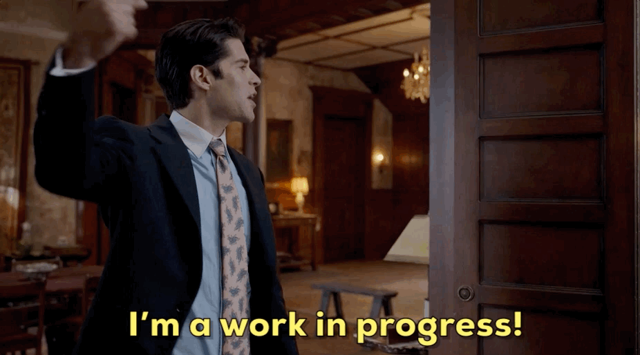 뜻: “진행 중인 일”, “아직 완성되지 않은 것”, “수정·개선 중인 상태”