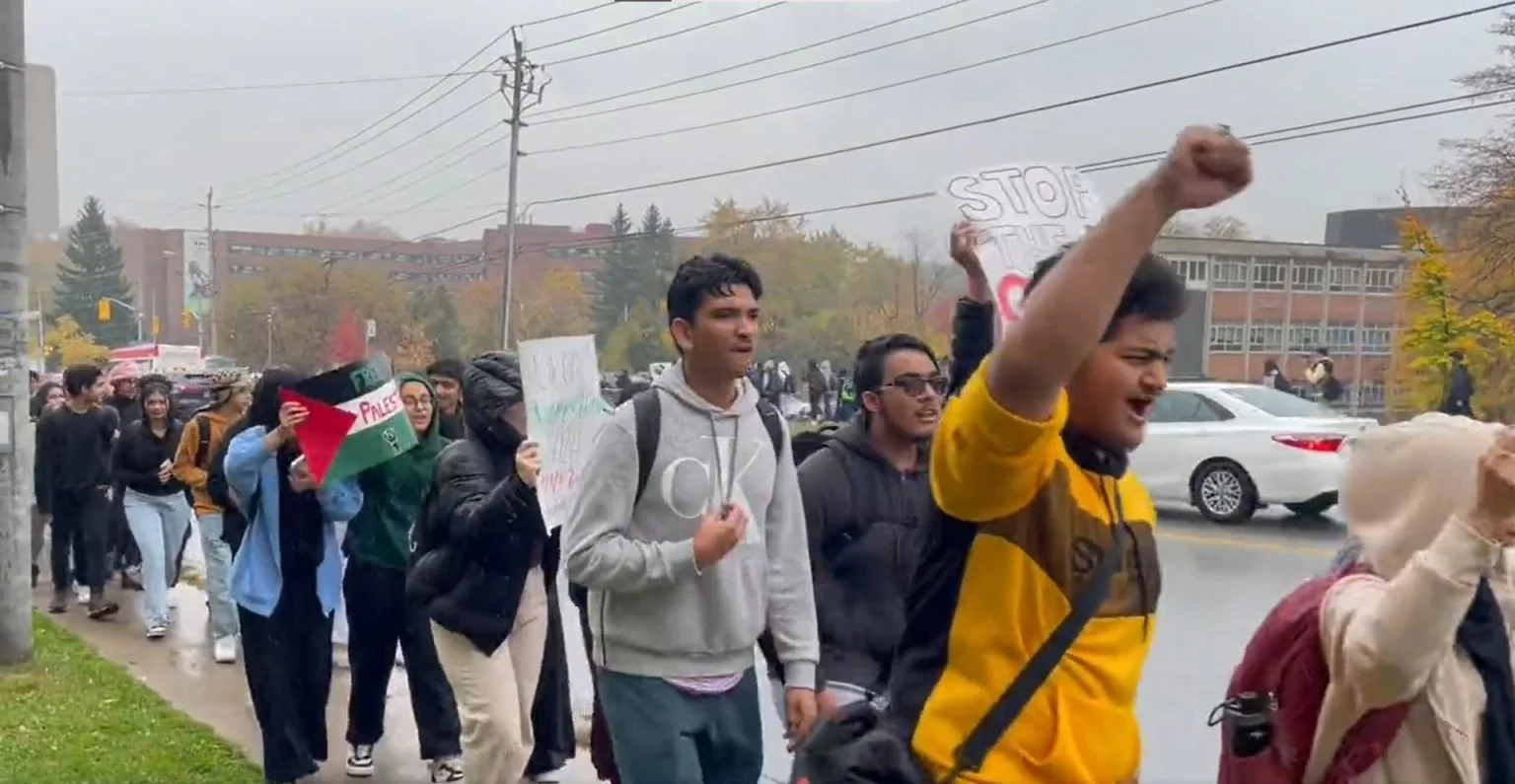 *스카보로의 Cedarbrae Collegiate Institute에서 열린 토론토 고교생들의 팔레스타인 지지 격려 시위