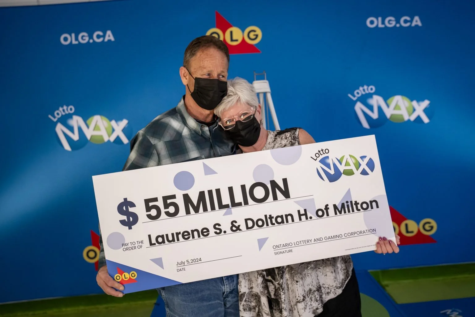 *무려 5,500만불의 Lotto Max jackpot을 터트린 밀턴의 Laurene Shail and Doltan Hawk 부부