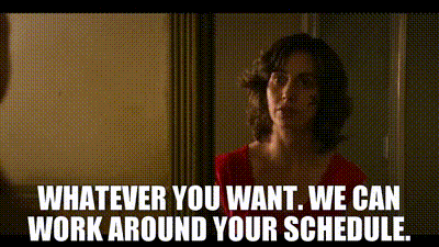 “Then, we’ll work around your schedule and meet in the afternoon”