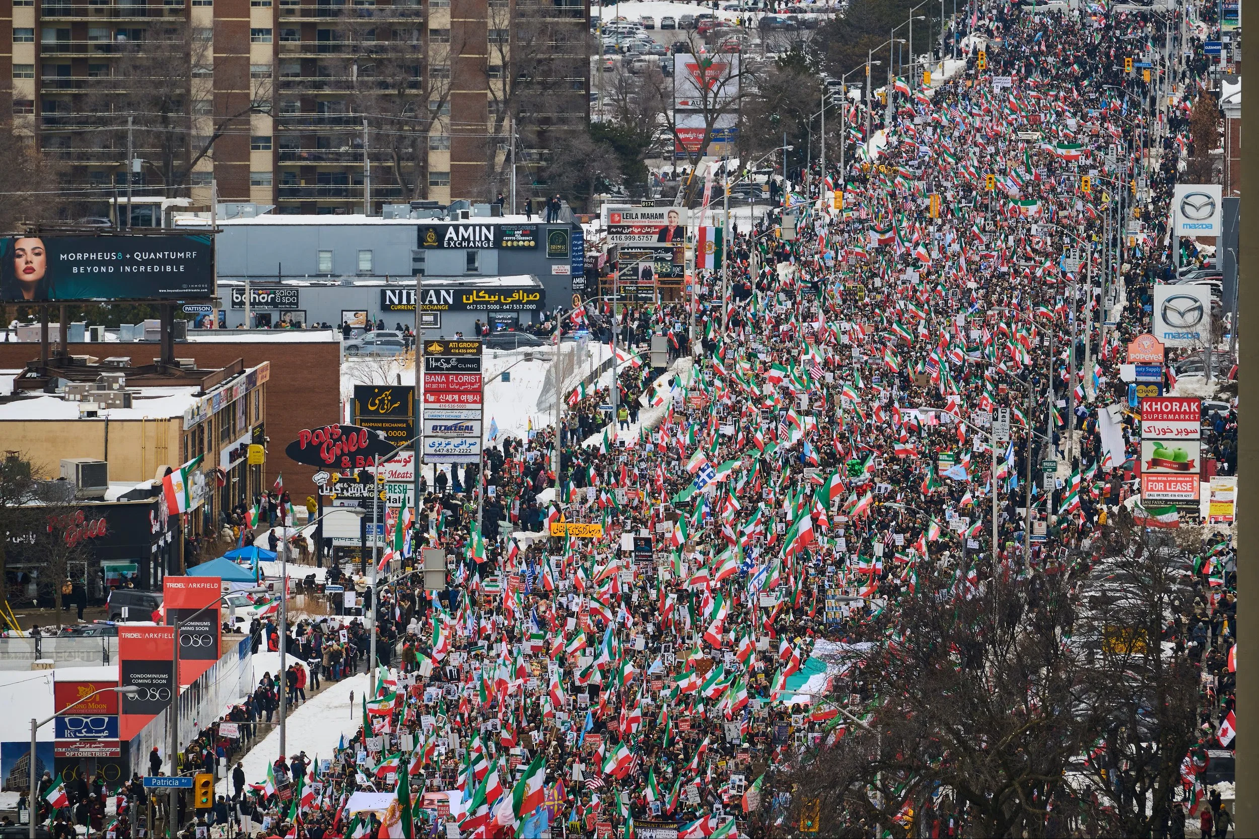 *노스욕 Yonge Street 일대를 가득 메운 이란 반정부 시위대