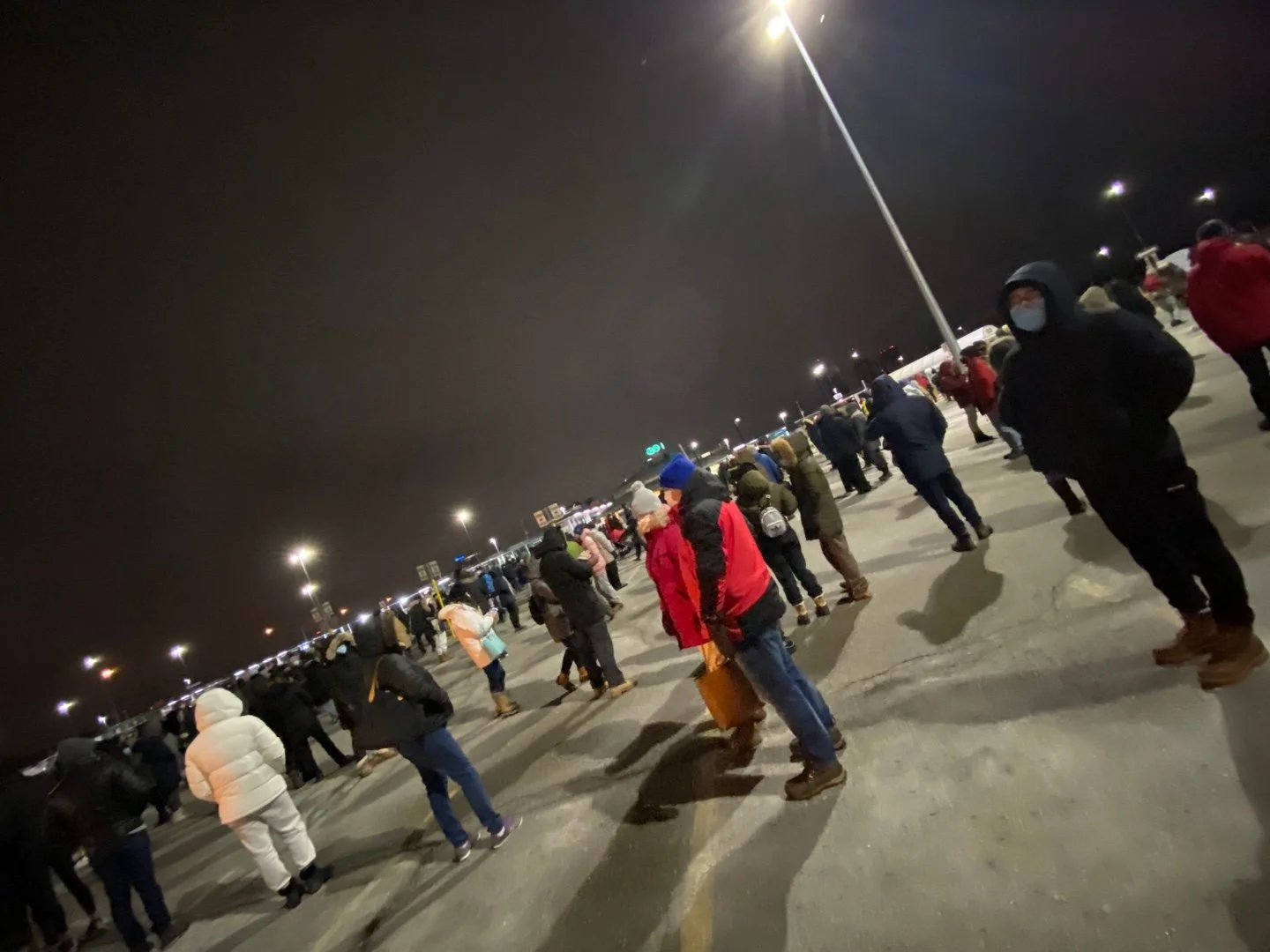 *23일(목) 새벽부터 유니언역에서 신속진단키트를 받기 위해 길게 줄을 선 시민들(독자 이효진씨 사진)