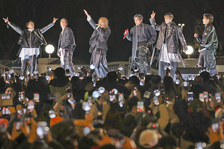 21일 오후 8시 광화문광장에서 방탄소년단(BTS) 완전체 컴백 공연이 막을 올렸다. 세계 각지에서 모여 이날 새벽부터 '명당'을 지키던 팬덤 '아미'를 비롯해 국적과 나이를 가리지 않은 팬들이 BTS 멤버 7인의 등장에 일제히 환호했다.