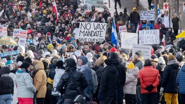 *백신 반대 시위를 벌이는 일부 퀘벡주민들