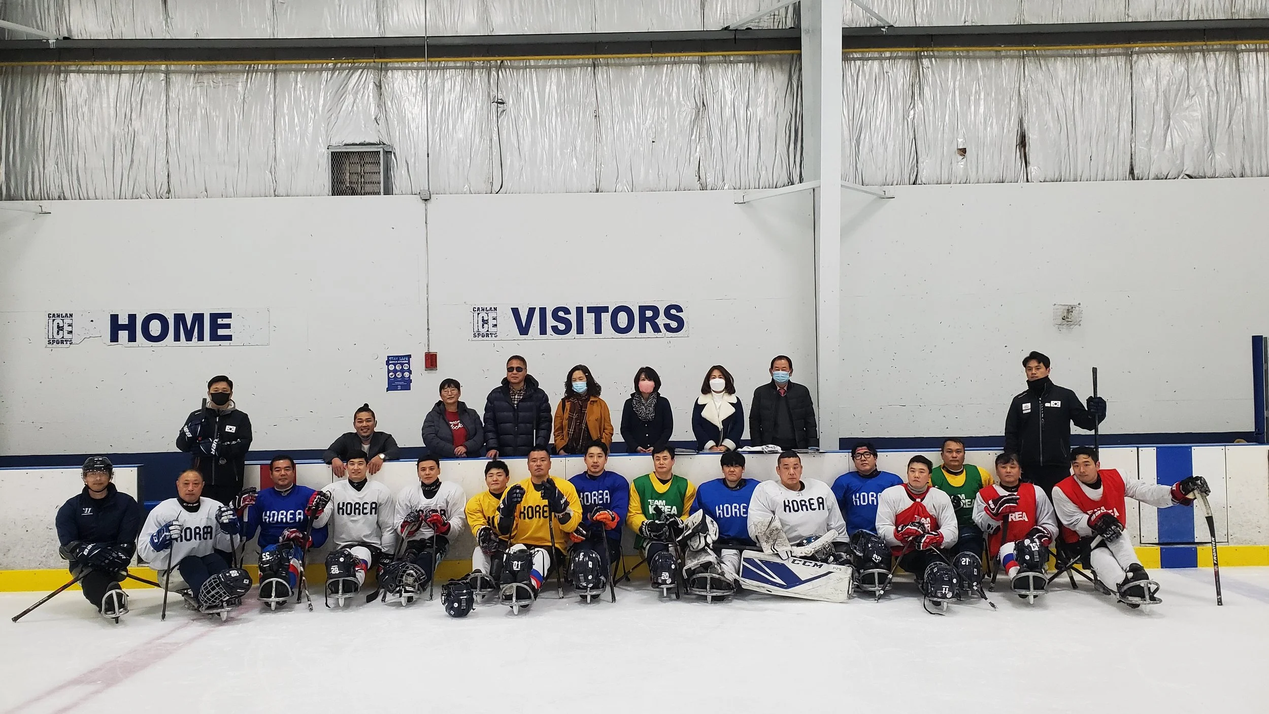 토론토 성인장애인공동체 한재범 회장과 이사들은 11일 한국 장애인하키 대표팀 전지훈련장인 에토비코의 Canlan Ice Sport Centre(1120 Martin Grove Rd.)를 방문해 선수와 임원들을 격려했다.