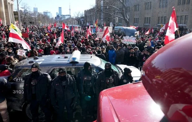 *백신반대 시위로 토론토 킌스파크 주변과 다운타운 곳곳 극심한 정체…