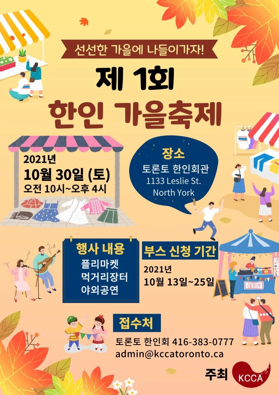 토론토한인회 주최 ‘2021 가을축제’가 금주말(30일) 오전 10시~오후4시까지 진행된다. 한인회는 다양한 공연과 먹을거리를 준비하고 동포들의 많은 참가를 기대하고 있다.