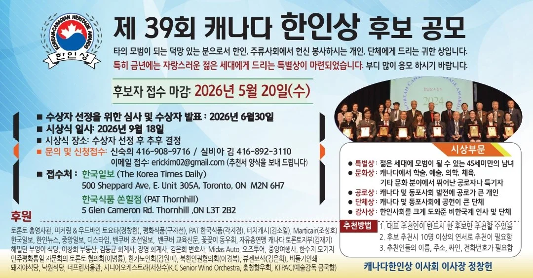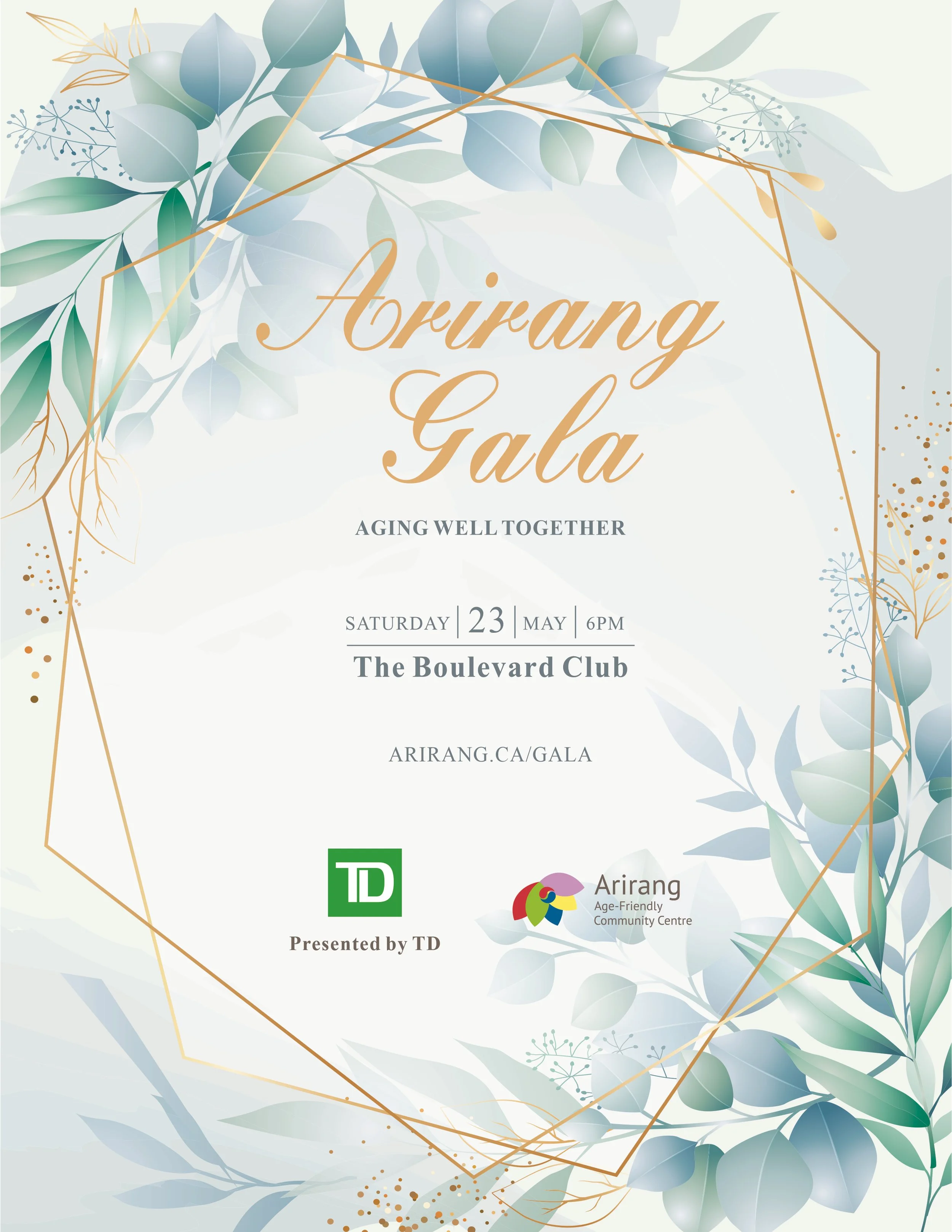 갈라 후원에 대한 자세한 내용은 홈페이지, 또는 이메일(INFO@ARIRANG.CA), 전화(416-398-6867 ext. 101)로 문의하면 된다.