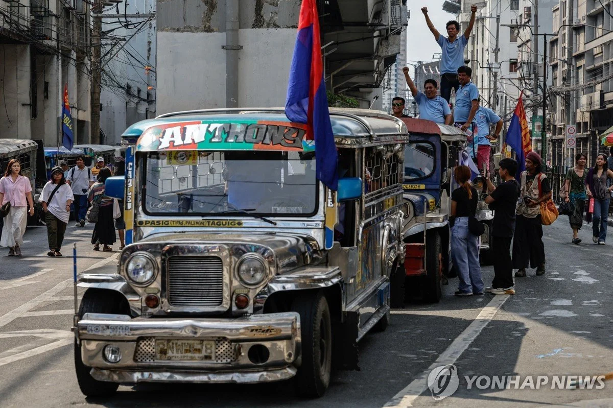 *필리핀 수도 마닐라에서 필리핀의 대표적 서민 교통수단인 지프니 운전사들이 연료 가격 급등에 항의하는 시위를 벌이고 있다.