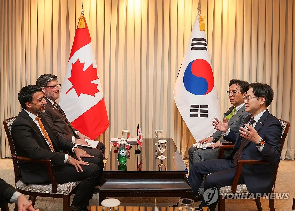 *김정관 산업통상부 장관이 31일 서울 중구 롯데호텔에서 마닌더 시두 캐나다 국제통상부 장관과 면담하고 있다.