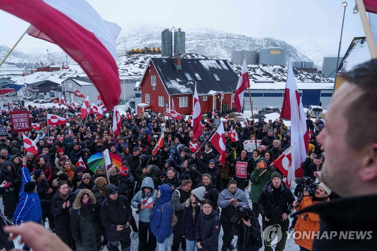 *트럼프의 병합 야욕에 항의하며 지난 18일 그린란드 수도 누크 거리를 가득 메운 시위대