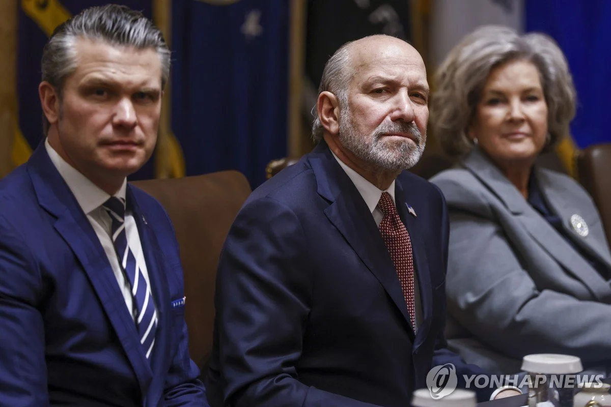 *왼쪽부터, 헤그세스 국방장관, 러트닉 상무장관, 와일스 백악관 비서실장
