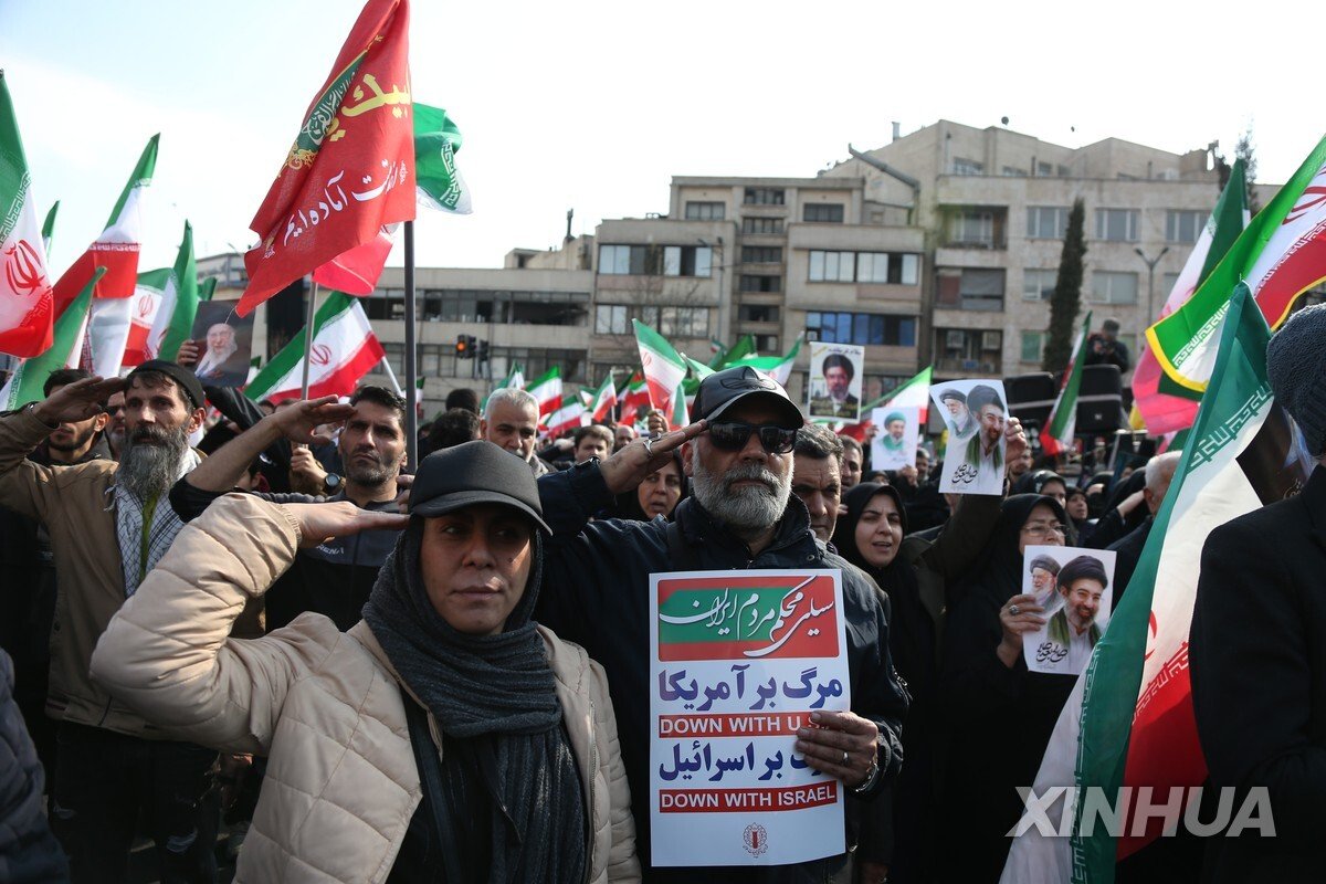 이란은 미국, 이스라엘의 폭격으로 사망한 아야톨라 알리 하메네이 최고지도자의 차남인 강경파 아야톨라 모즈타바 하메네이를 차기 최고지도자로 임명하고 결사 항전 태세를 이어가고 있다. 테헤란 도심 엥겔랍 광장에선 수만 명의 시민이 모여 모즈타바 하메네이의 최고지도자 선출을 축하하면서 그에 대한 충성 맹세 행사를 열었다.