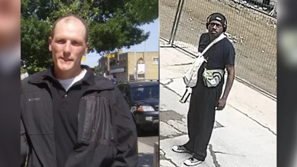 *30대 흑인남성(오른쪽)이 휘두른 칼에 목을 찔려 숨진 50대 남성(왼쪽)