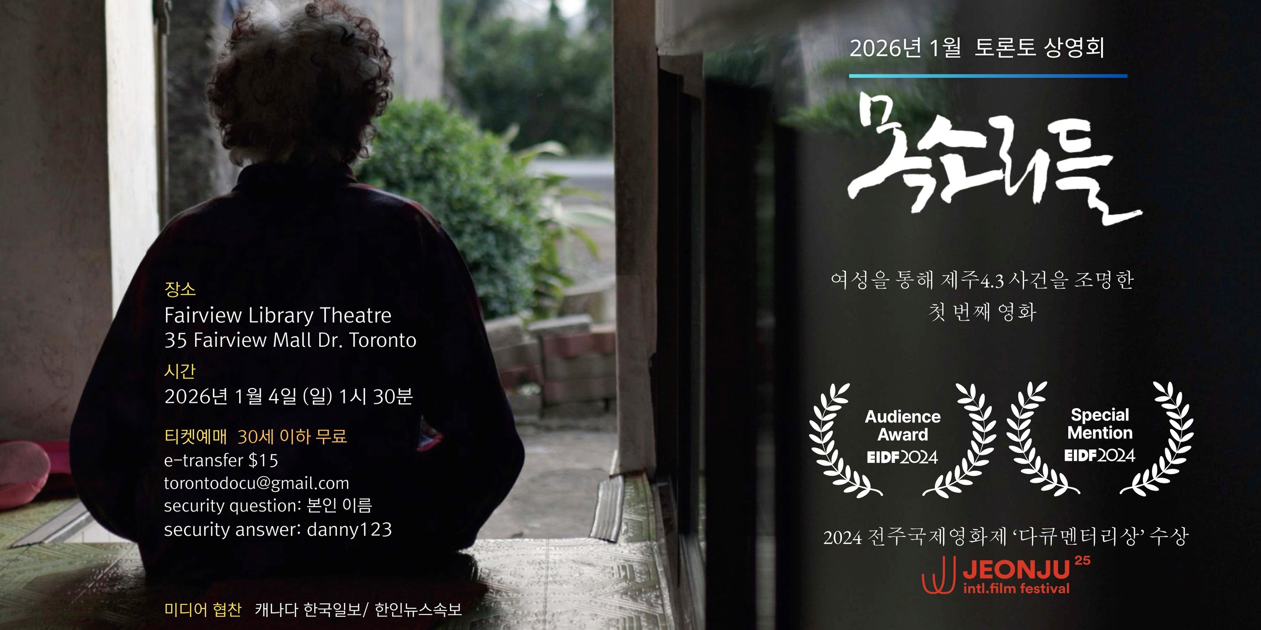 *제주 4.3사건을 다룬 다큐멘터리 영화 ‘목소리들’ 토론토 상영회(2026년 1월 4일)