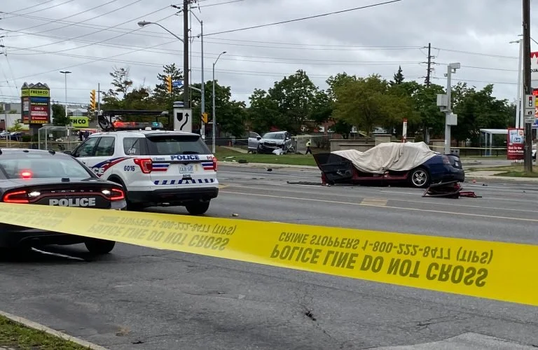 오늘 아침 5:30분경 토론토 배더스트 & 스틸스 사거리에서 두대의 차량 정면충돌, 1명 사망 2명 중상…