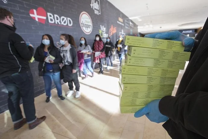 *신속 진단키트를 받기 위해 길게 줄을 선 시민들