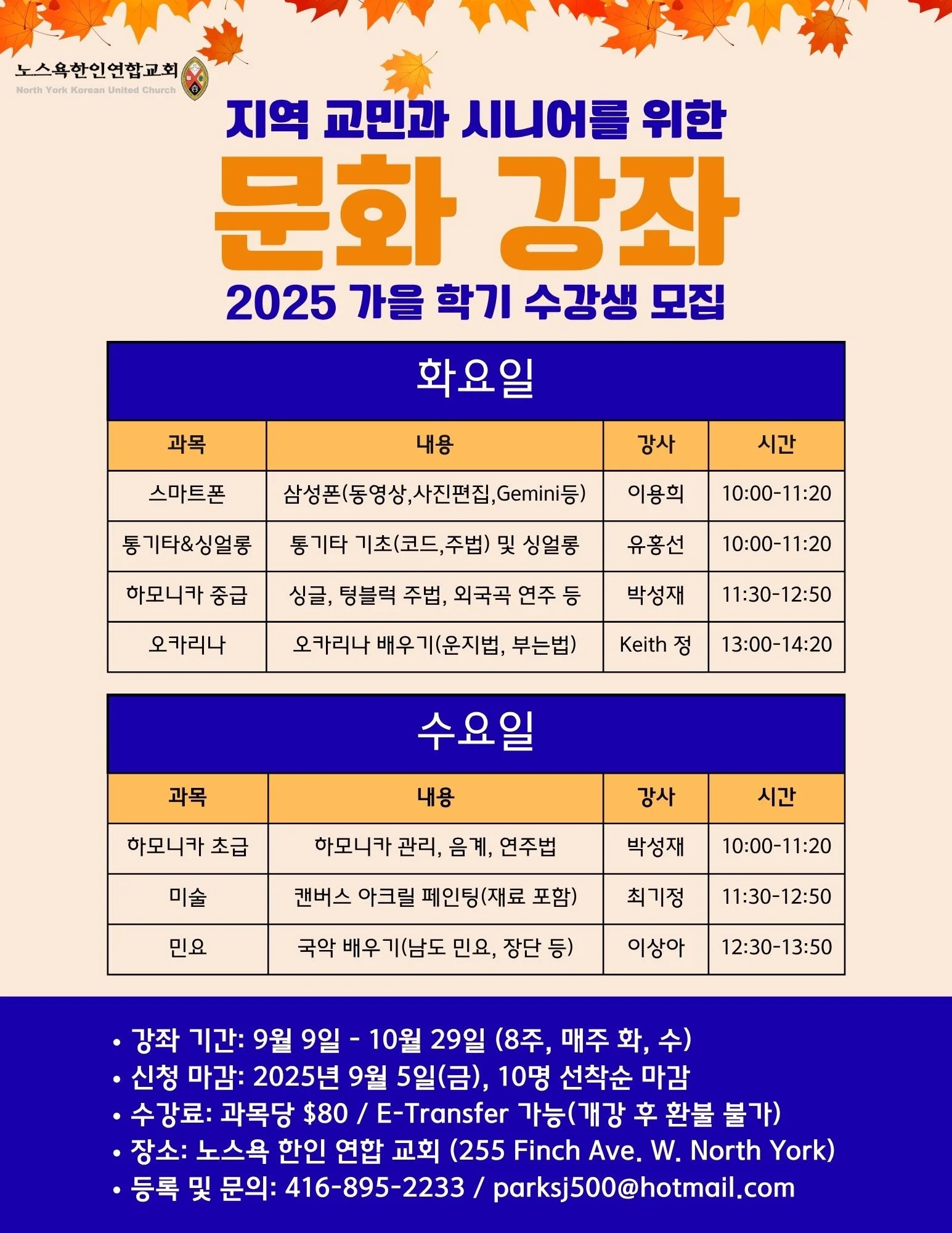 *문의: 647-286-3798/ yongulee@hotmail.com
